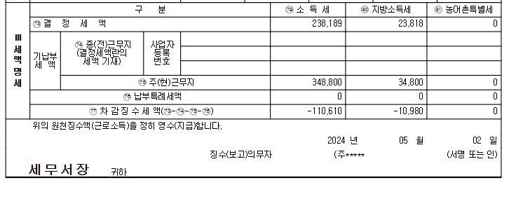 안녕하세요 작년 11월에 퇴사하고 아직 무직입니다.5월 종합소득세 신고기간에 혼자 홈텍스로 연말정산 중인데 2023년분 회사에서 제출한 지급명세서 보니 차감징수세액이 마이너스로 떠있던데 저거는 회사에서 받아야되는 금액 맞을까요?