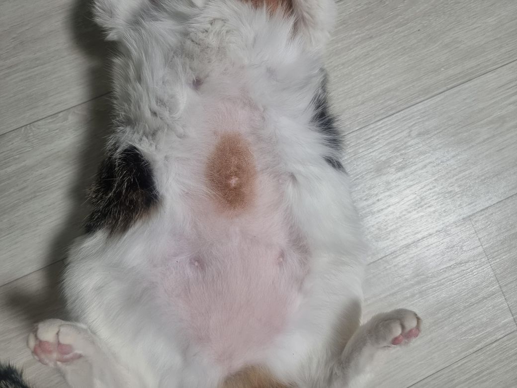 과도한 그루밍에 의한 문제인에 배꼽 부분이라 urachal cyst와 같은 특정 기형에 의한 이상 신경자극 가능성이 있습니다. 주치의와 상담받으시고 필요한 진료를 받으시기 바랍니다.