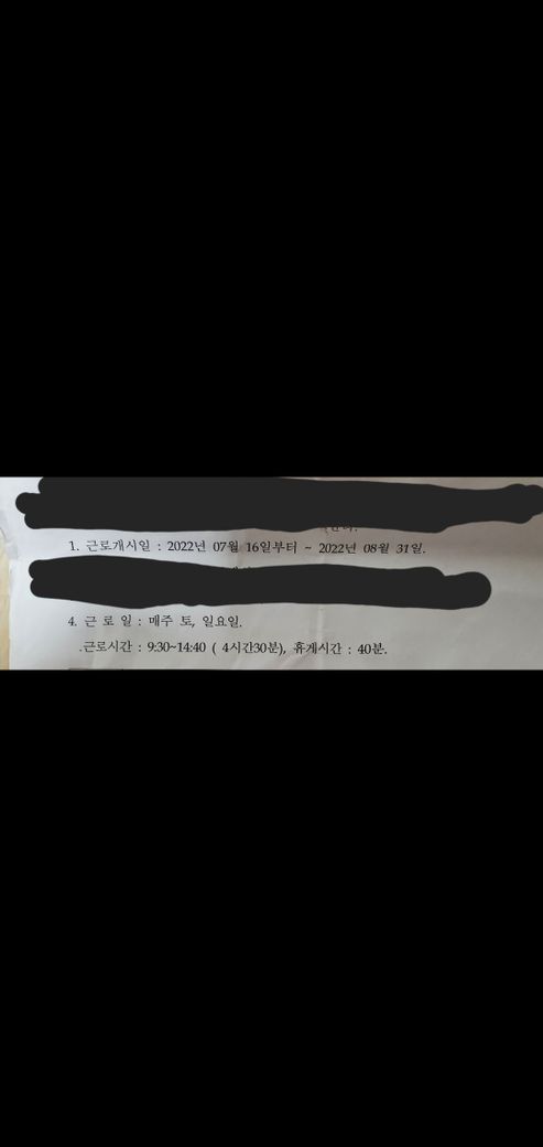 위와 같이 근로하면 하루 실 근로시간은 4.5시간이고, 7월에는 이렇게 4일 근무하였으므로 18시간이 유급처리되는 시간입니다. 주휴수당은 주 소정근로시간이 15시간 미만이라 발생하지 않습니다. 18시간에 최저임금 9,160원을 곱하면 164,880원이 됩니다. 질문자님이 받은 금액은 이보다 조금 낮으나, 세금이 공제되어 차이가 발생하는 것으로 추정됩니다.