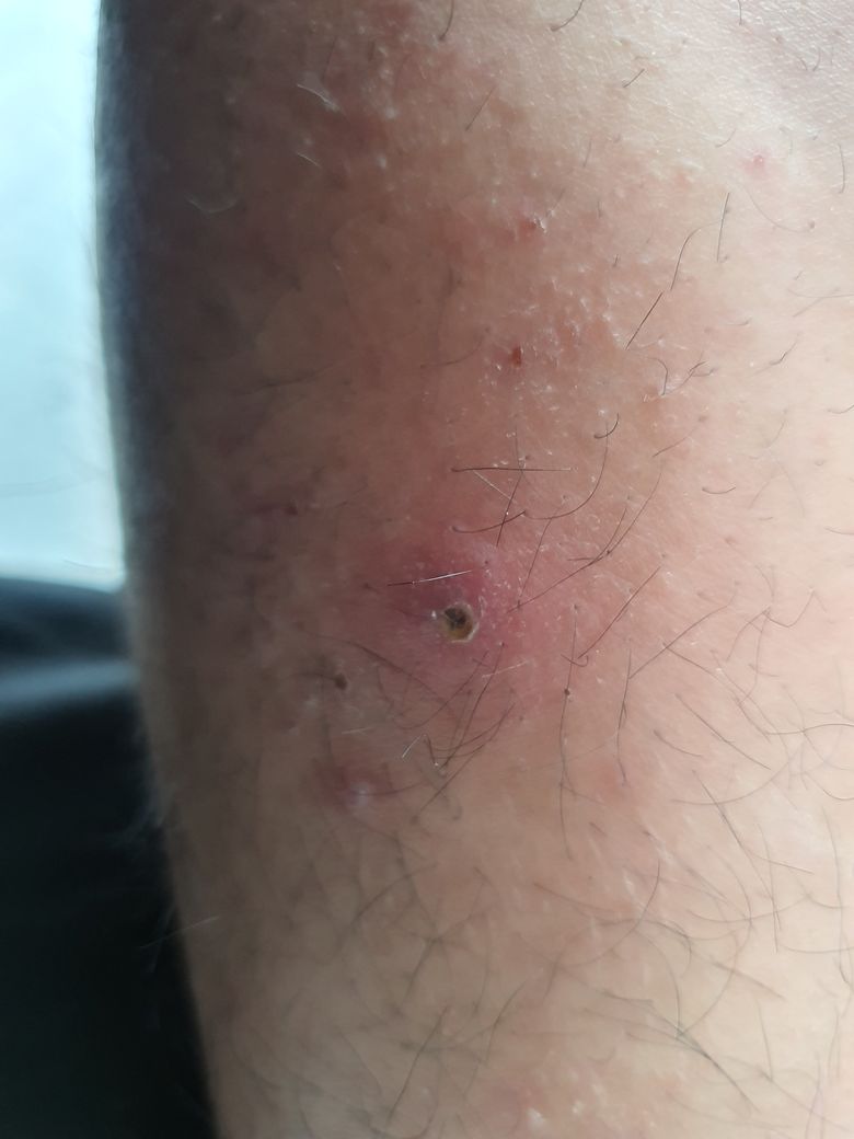 안녕하세요 얼마전에 벌레 물린데 너무 긁다가 피가 난후 딱지가 앉았습니다 그리고 일주일정도 지나고 식당 의자에 앉다가 딱지쪽을 박았는데 너무 아파 걷어서 확인해보니 주위에 여드름 처럼 붉은반점이 생겼습니다 그리고 걷다보면 통증이 계속 옵니다 제가 느끼기엔 봉와직염인것 같은데 맞나요?