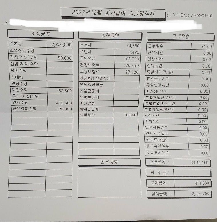 혹시 몰라 퇴사한 12월 급여명세서도 올려요