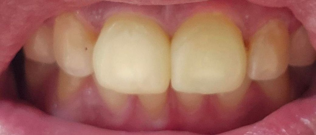 의사 말씀으로는 안에 치아가 비춰서 마스킹처리 해서 다시 만든거라고 하는데 또 안에 치아가 비치는건지 흰색반점이보여서요 .