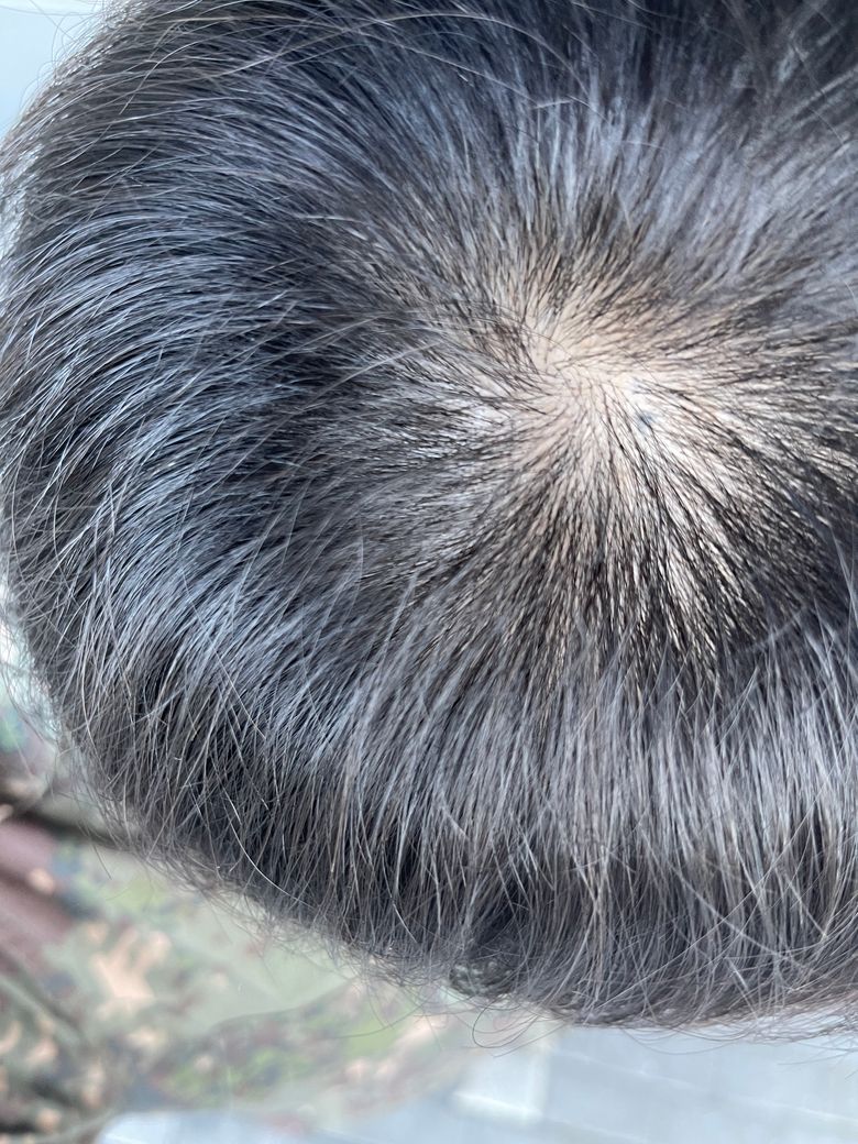 숱이 적어보이나 탈모로 보이지는 않습니다.