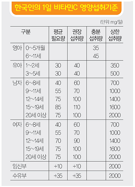 비타민C를 말씀하시는것 같은데 일일 권장섭취량 기준은 100mg입니다.