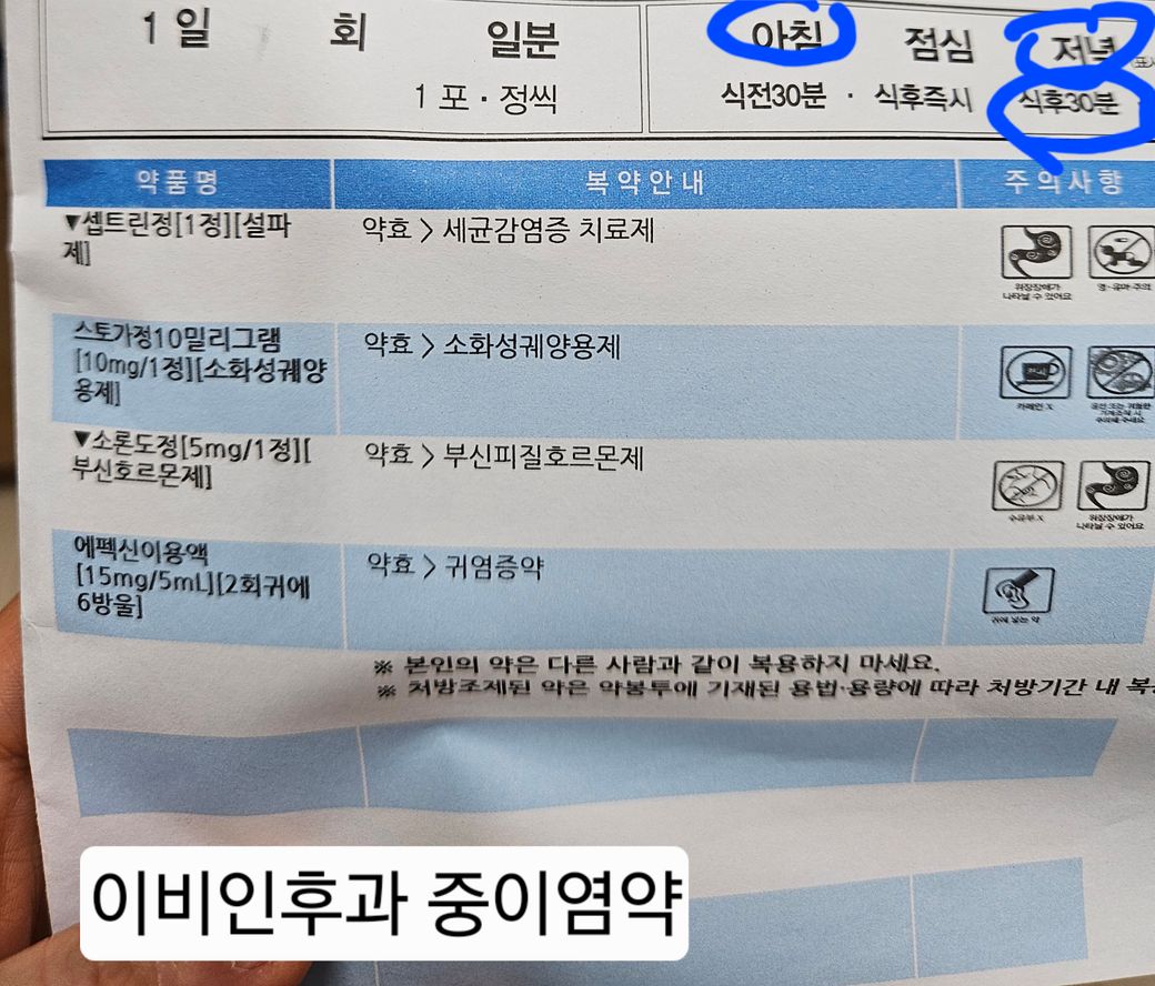 중이염이 있어서 어제 대학병원에서 중이염약을 받았습니다