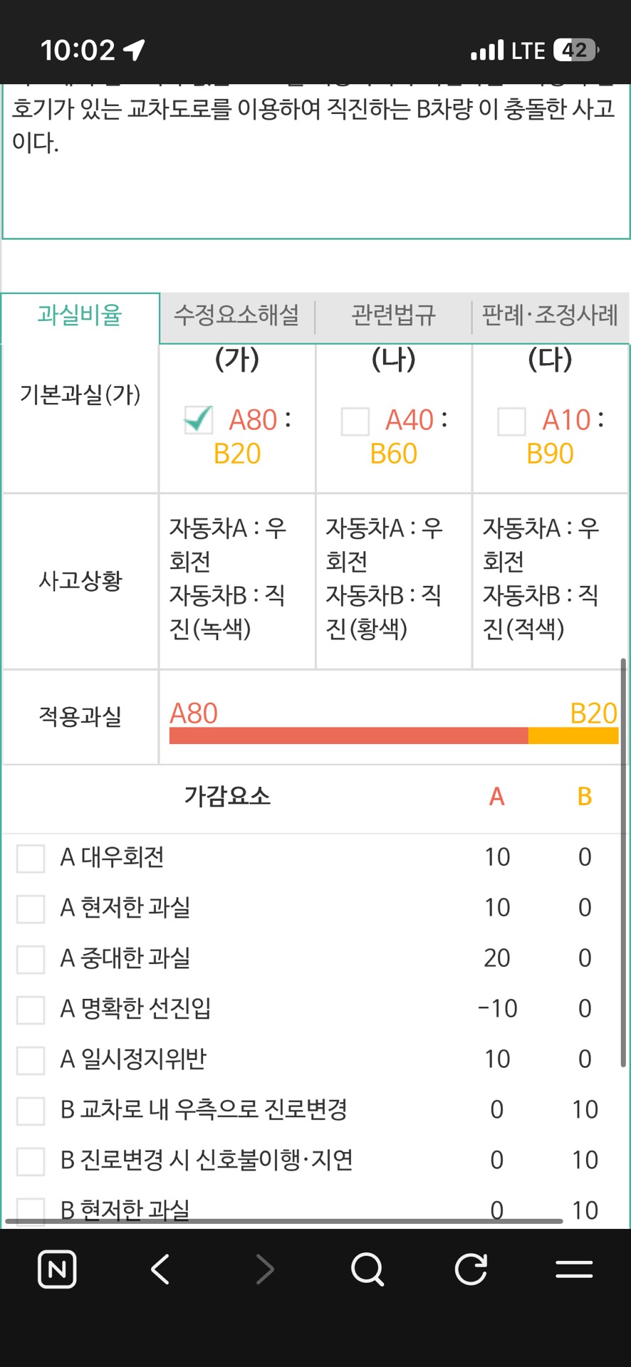 교차로 직진차량과 사고 과실 비율이 어떻게될까요?