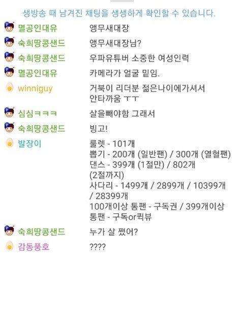 bj분이 거북이 노래를 듣고 계셧는데 어느분이 살이.좀 이걸 채팅창에 치셧더라구요 저는 그 채팅창을 못보고