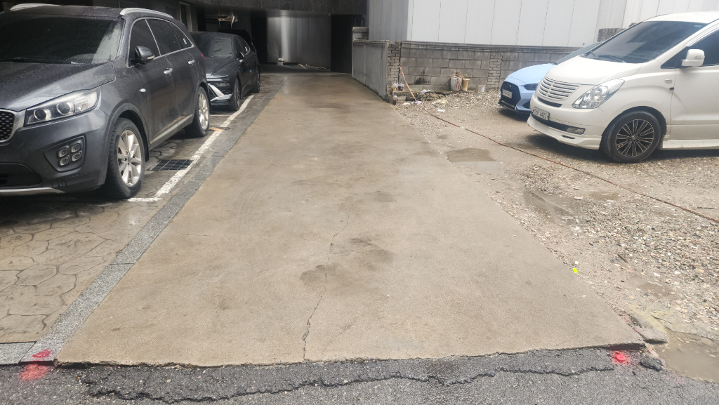 이땅의 지목은 도로이고요 잡종지에서 변경된건 30년이 넘었습니다 저희는 이쪽이 아니면 주차장에 차량진입과 사람도 경계석만 밟고다녀야되는데요 이게 막을수가 있나요 저희빌라 신축 전에는 앞뒤로 구축이 있었던거 같습니다 이런 상황에서 저희가 할수있는 방법은 구입이나 사용료를 내는 방법뿐인가요