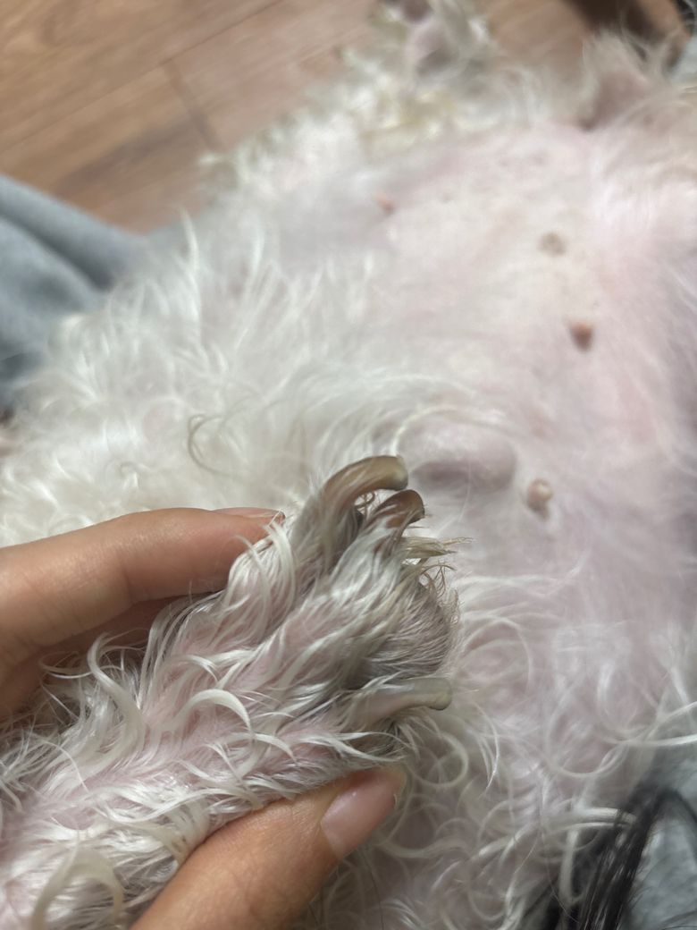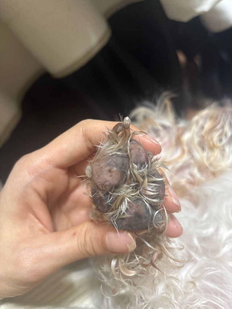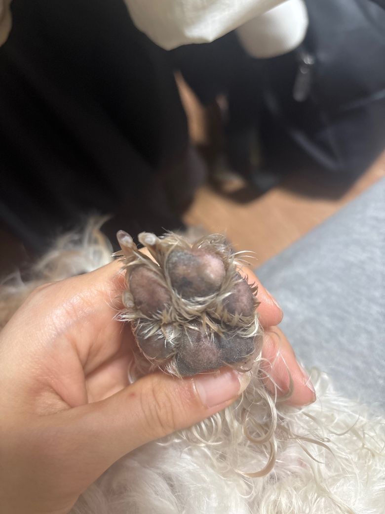 강아지 양쪽 발바닥 패드가 부어있어요.