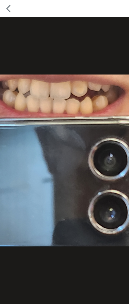 사진 상으로는 착색, 치석 또는 반점치의 가능성이 있습니다