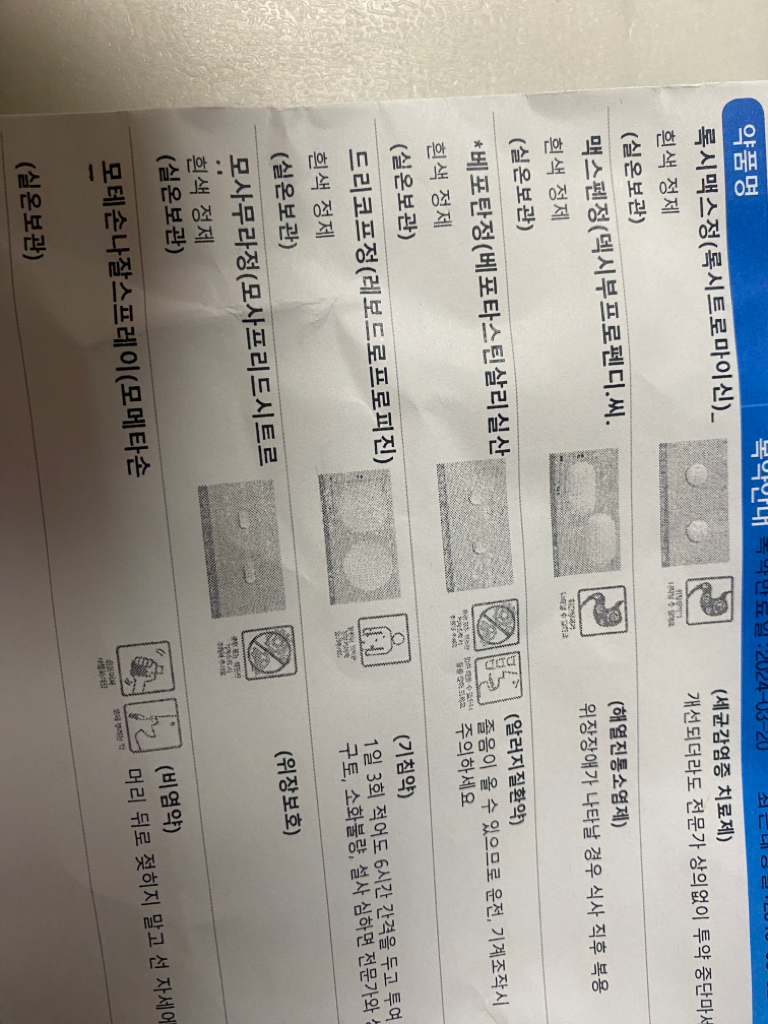 현재 기침 증상이 없다면 드리코프정은 빼고 드시는 것도 가능합니다