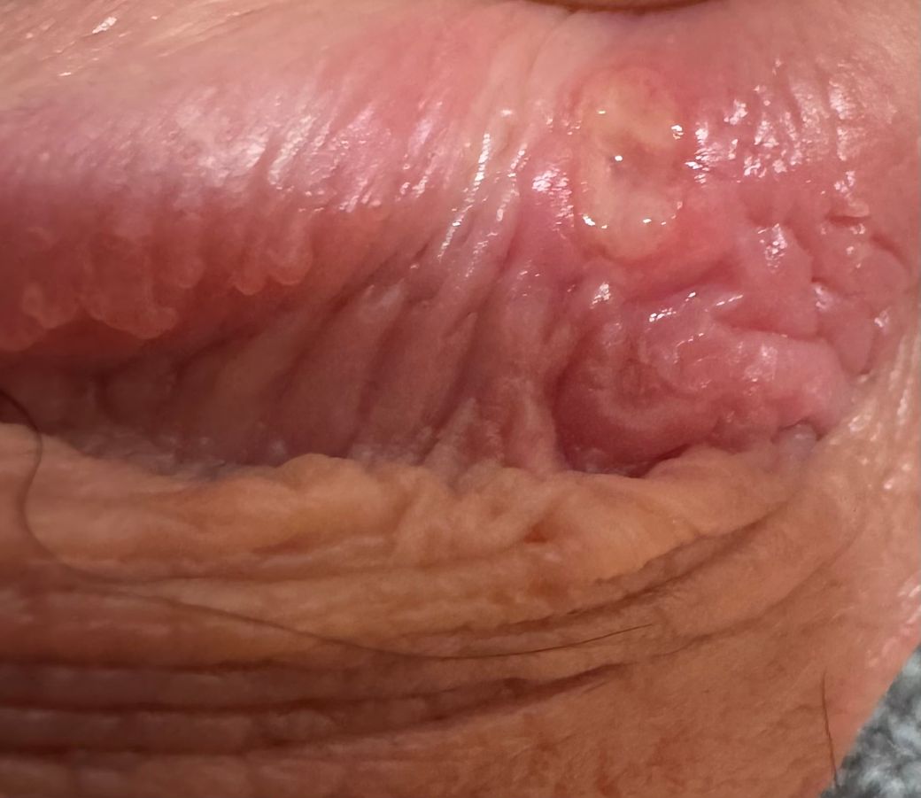 성기에 궤양성 병변이 동반되었다면 성병의 동반 가능성 배제를 위해 비뇨기과를 방문하여 검사를 먼저 받을 것을 권합니다.