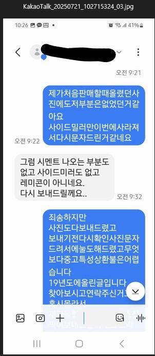 입금확인 후 택배발송을 위해 포장을 진행하던중 6년전과는 다른 파손부위가 확인되어 구매자님께 파손부위 사진을 보내주면서 구매의사를 재확인 하였습니다. 없다고 하면 환불해줄려고 했으나 사진을 보고서도 구매하겠다고 하여 택배발송을 하였습니다.