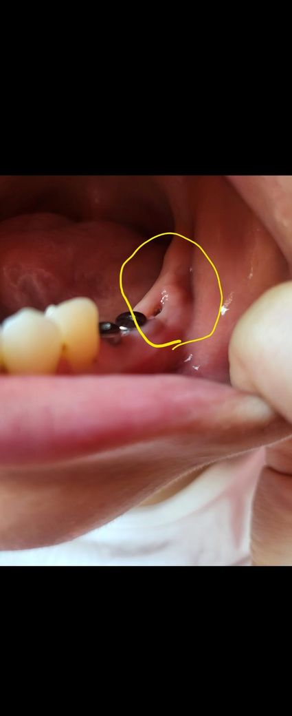 사진에 보이는건 염증이 아니고 잇몸이 눌려서 물집같은게 잡힌거 같습니다. 치과에 가셔서 확인후 터트리거나 그냥 두셔도 될것같습니다.