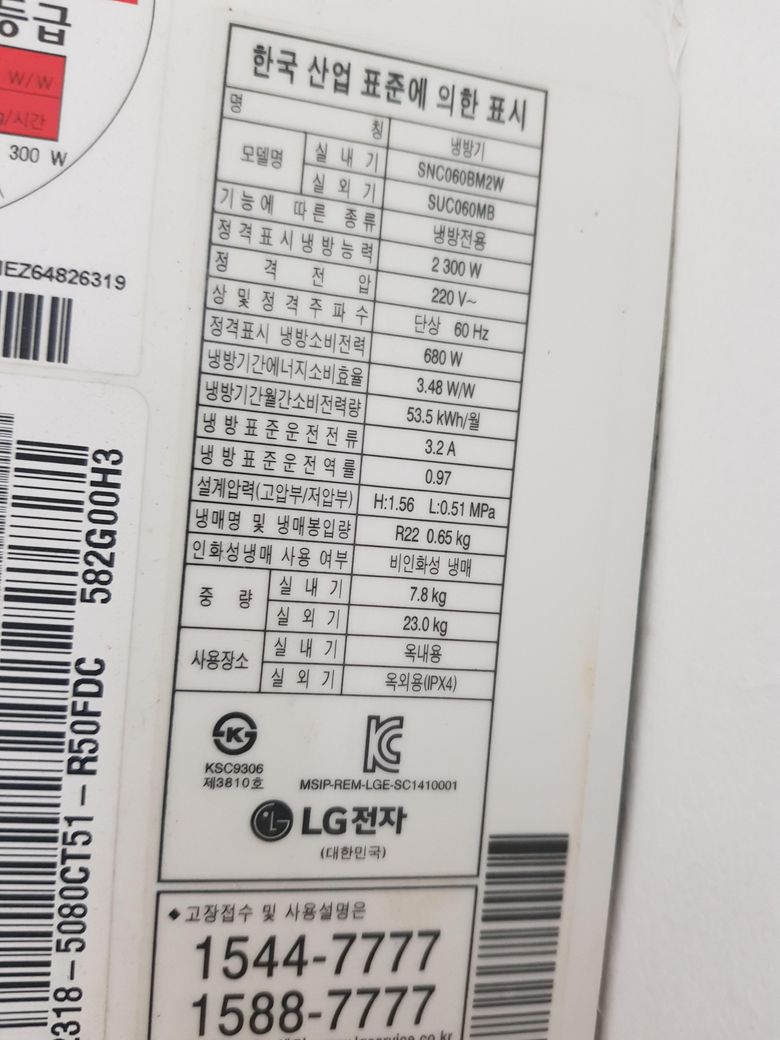 이런 이유로 구별을 하는 두 번째 방법은 바로 냉매입니다. R410a 냉매를 사용하면 인버터입니다. 지금 사진에 보이는 R22 냉매는 구형으로 정속형에 사용을 하는 냉매입니다. 이런 것을 알아두길 바랍니다.