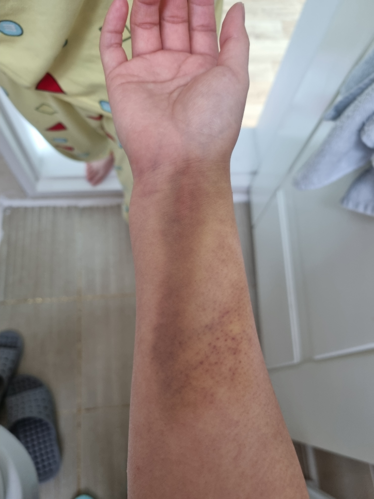 멍든 부위에 감염증이 발생하지는 않았으니 시간을 두고 지켜보실 수 있겠습니다. 한 번씩 가까운 의원에서 멍든 부위를 확인해보시는 것도 불안감을 낮출 수 있는 방법이 되겠습니다.