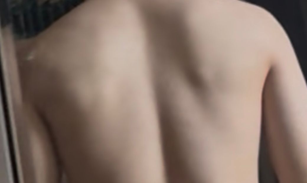 제 견갑골 사진입니다 느낌상 오른쪽 쇄골이 돌출된느낌 그리고 견갑이 살짝 떠있다해야되나 잘 안붙어 있는느낌입니다.