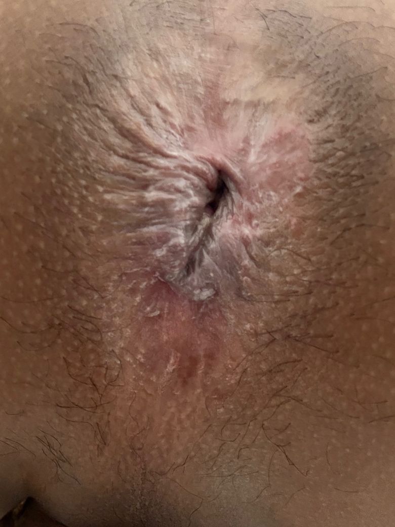 밤에 가려움이 심해지는 점은 피부 장벽이 약해진 상태에서 염증·건조가 심해질 때 흔히 보입니다. 건선도 감별 대상이지만 항문 단독 병변이고 통증·출혈이 없는 점에서는 우선순위는 낮습니다. 다만 항문 주위 칸디다(곰팡이) 감염, 요충증도 가려움이 심한 경우 배제는 필요합니다.
