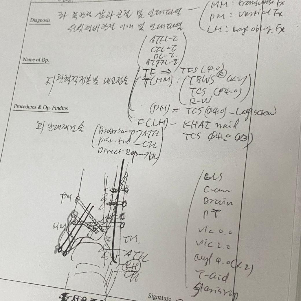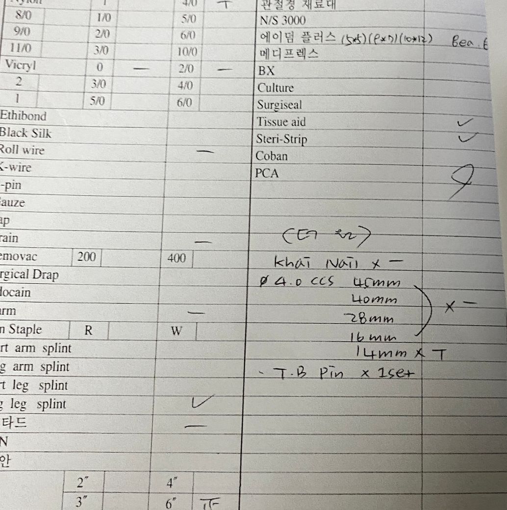 골절수술에 사용한 핀 정보가 여기에 적혀있을까요?