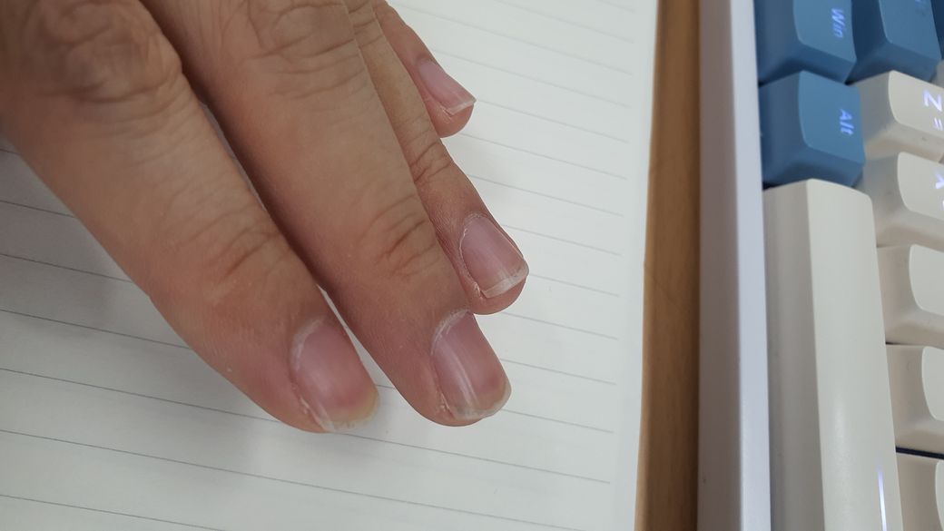 손톱이 있는 마지막 마디의 손가락이 뭔가 재질이 달라요.