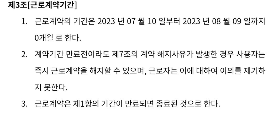 또 계약서에 7월 10일~8월 9일 이면 1개월인데 "0개월 로 한다"라고 되어있는건 상관 없는 부분일까요?