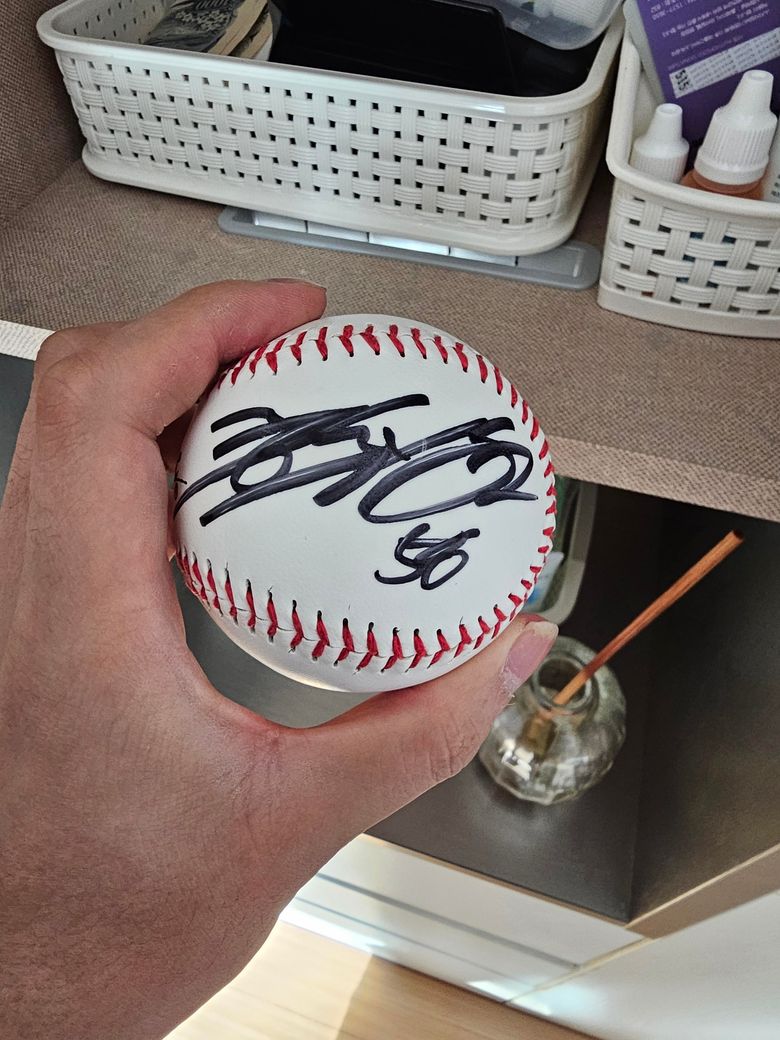 집에 야구공 하나가 있는데 어떤 선수에게 받은지 기억이 나지 않아요 보시고 누구 싸인볼인지 알려주시면 감사하겠습니다. 새해복 많이 받으세요
