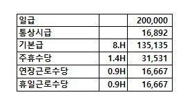 다만 질의와 같이 임금을 책정하는 경우, 1일 근로시간이 8시간이라면 추가적인 연장근로수당이 발생합니다.