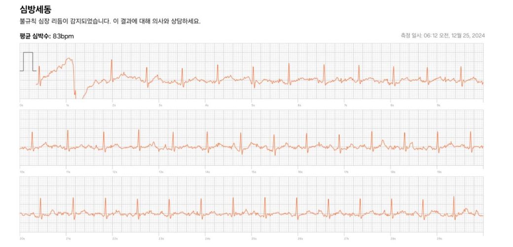 요즘 살이 확 찌게되면서 120kg가 되어 가끔식 가슴이 답답하며 막히는듯 아플때가 있어서 갤럭시워치를 착용하고 ecg측정을 했는데요 평소에는 동리듬이 나오지만 증상이 나올때 하면 심방세동이 나옵니다. 정말 심방세동인가요?