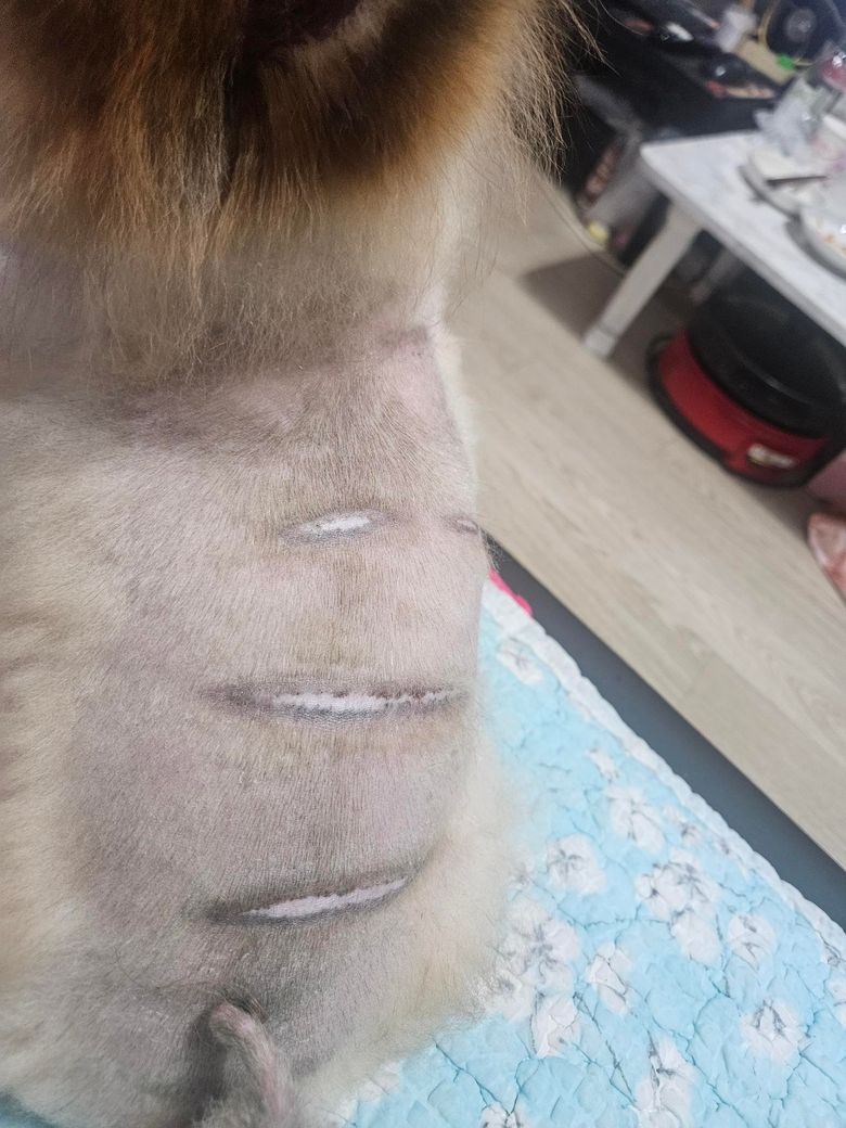가보니원일몰라서 곰팡이키트검사등등 연고처방약받앗서먹고있는도중 등어리가심각해져서털밀어보니 화상을다했는데도의사는그걸모른고있다