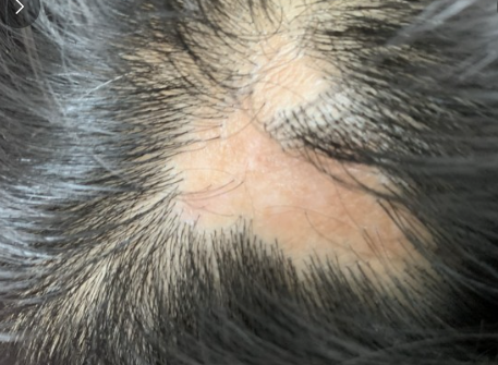 원형탈모는 아래 사진처럼 머리카락이 하나도 없는 부위가 명확히 확인됩니다.