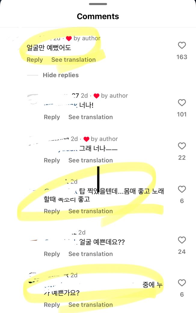 초록색으로 표시한 건 제가 쓴 댓글 내용입니다.