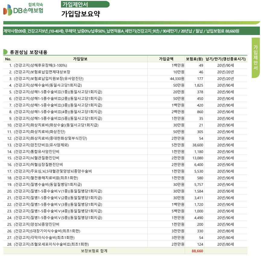 고정지출이 좀 여유로우시다면 치료비와 수술비 들어있는 DB로 선택하는게 좋을거같고