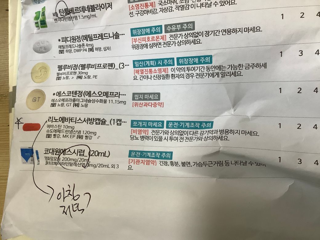 이와 관련하여 질문드립니다1. 리노에바티스 서방 캡슐만 콧물약에 해당해서 하나씩 들어있길래 식후에 복용했는데, 속이 너무 울렁거립니다 ㅠㅠ 약의 부작용인지 궁금합니다.2. 이 약을 먹어도 콧물이 흐른다면, 약국에 가서 다시 처방받는게 나을지 질문드립니다3.내일 수능 날에는 약을 어떤것도 안 먹을 예정이고, 전날에 최대한 증상을 잡아두고 싶은데, 그렇다면 약을 오늘만큼은 복용하는게 도움이 될지 궁금합니다.건강관리도 너무 중요한 시기인데 독서실에 감기 환자가 있어서 저도 마스크를 하루종일 쓰는 방향로 예방했는데 전날에 이렇게 갑자기 맑은 콧물이 나오는건 감기 초기증상일 수도 있을까요?? 너무 불안해서 질문 드립니다..!4개의 답변이 있어요!