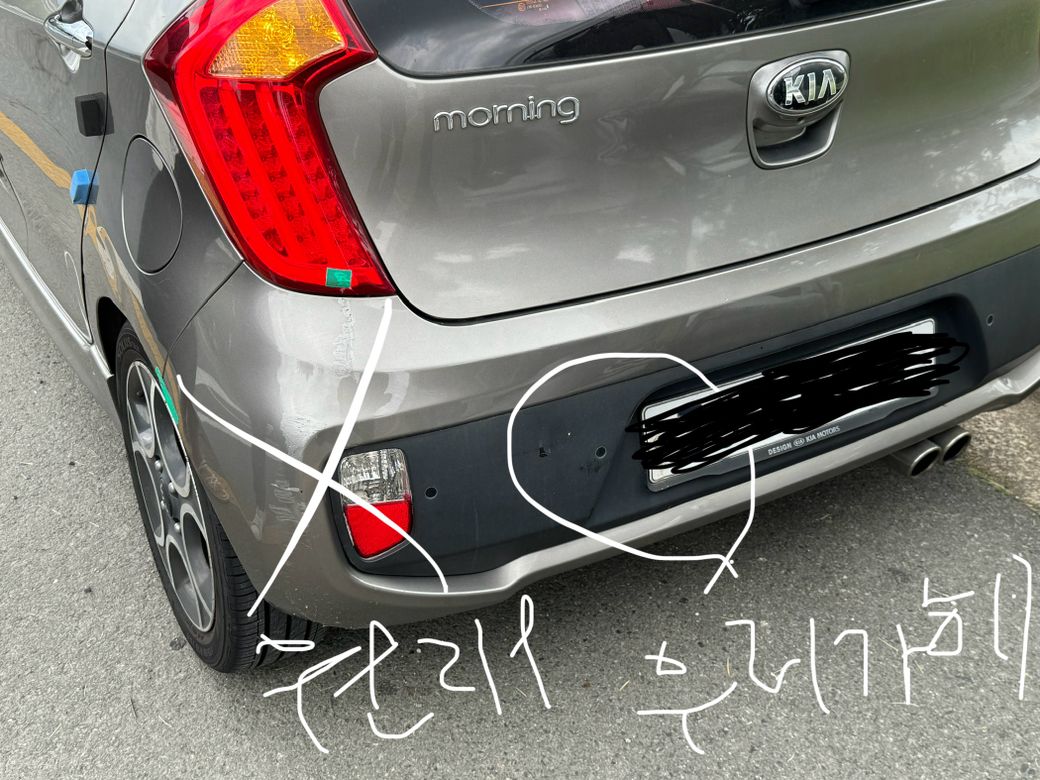 도로 주행 중 신호대기로 정차중이던 차량(경차)을 박았습니다. 박은 속도는 시속 5키로 미만이며 차량범퍼에 흠집이 조금 갈 정도의 경미한 사고였다고 판단되나(상대차 피해 사진 아래 참고)