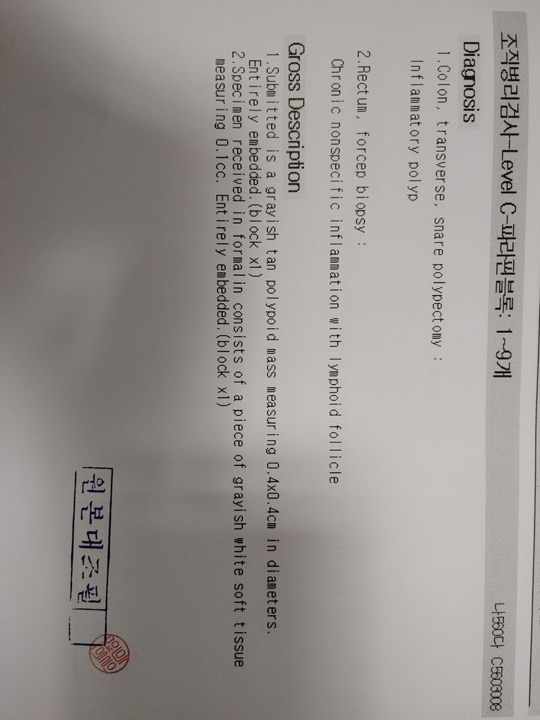 용종이나와서 조직검사를 시행했습니다