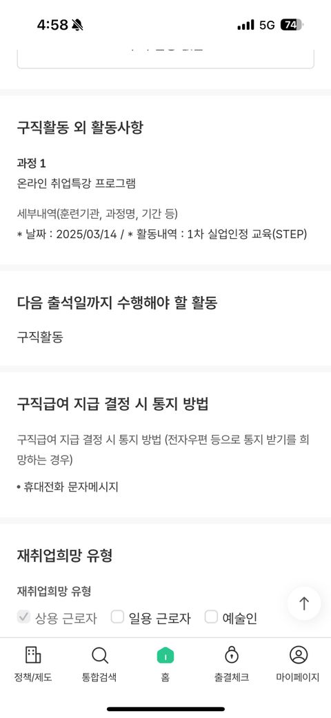 실업인정 2~4회차까지는 구직활동 뿐만 아니라 구직외활동도 가능하며, 5차 실업인정일부터 만료일까지는 구직활동을 1회 이상 반드시 포함해야 합니다.