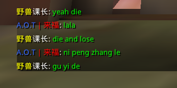 중국인들이 많은 게임인데, 팀동료끼리 나눈 얘기인거같은데 '녹색글자' 중국 발음으로 적은 게 어떤 말인가요?