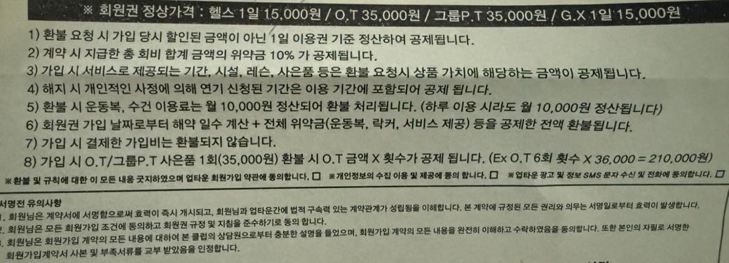 헬스장은 다음주부터 시작하기로 하여서 계약서 작성 외 이용은 한번도 하지 않았습니다.