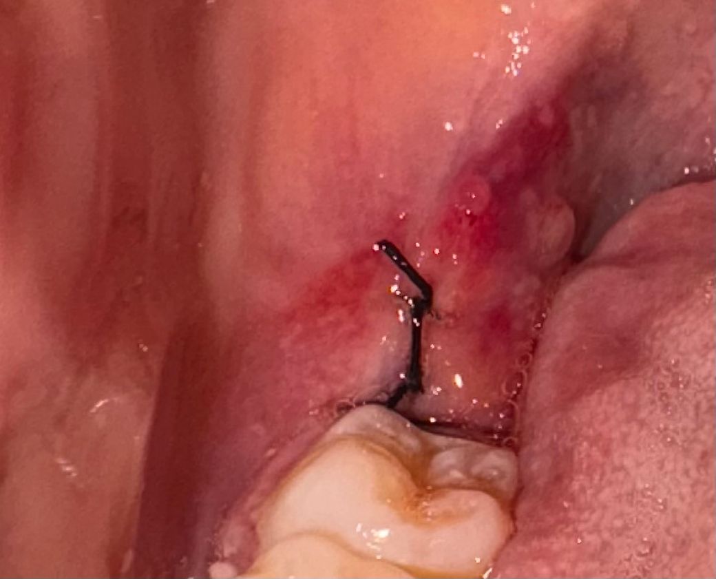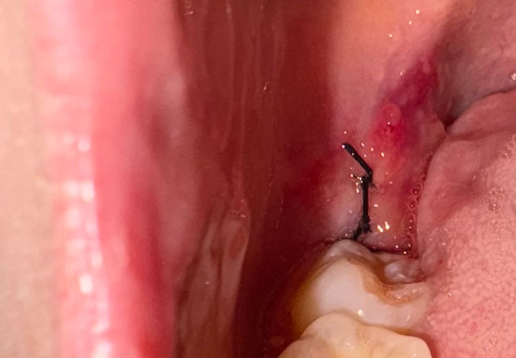 사랑니 발치 후 실밥 뒤에 저게 뭔가요??