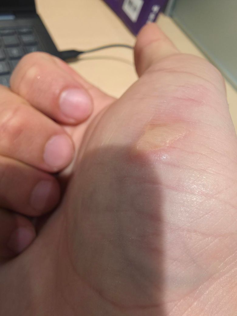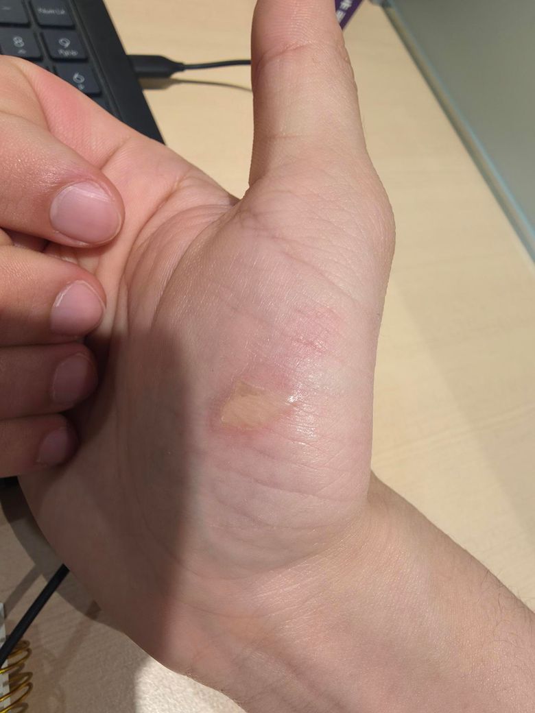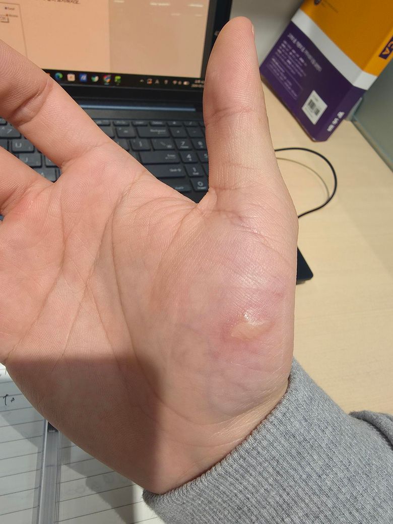 사진과 경과를 종합하면, 현재 병변은 2도 화상(부분층 화상)에 해당하는 것은 맞습니다. 다만 심재성인지 표재성인지의 구분은 임상 양상으로 추정은 가능하지만 단정은 신중해야 합니다.