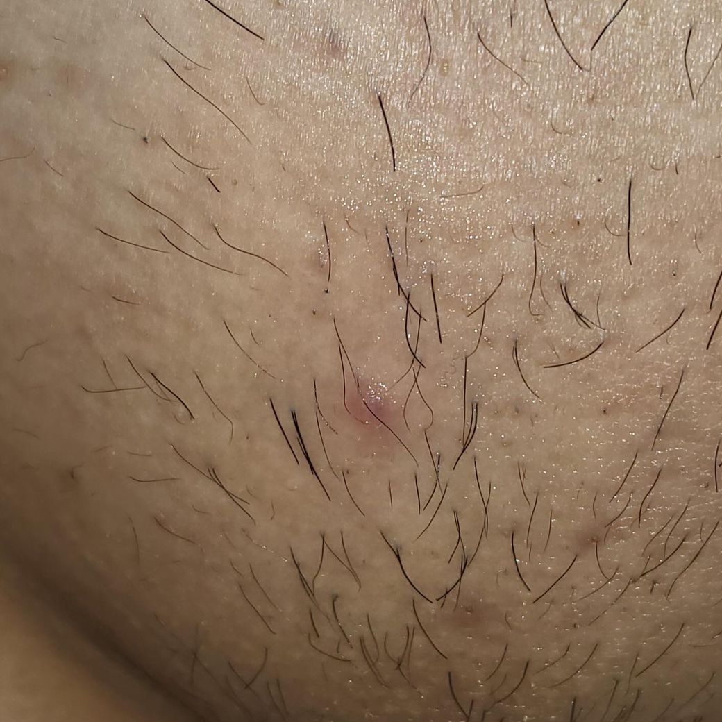 며칠전부터 살짝 올라와 있었는데 크게 통증은 없었고, 건드려서 붉고 따갑습니다. 인그로운 같은 털은 없고 헤르페스 2형인지 불안합니다... 에스로반 연고를 발라두긴 했습니다.