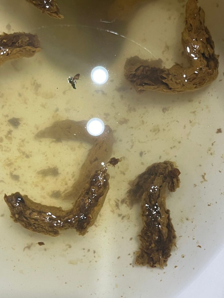 흑변? 회색변이 섞인 변을 봤습니다.