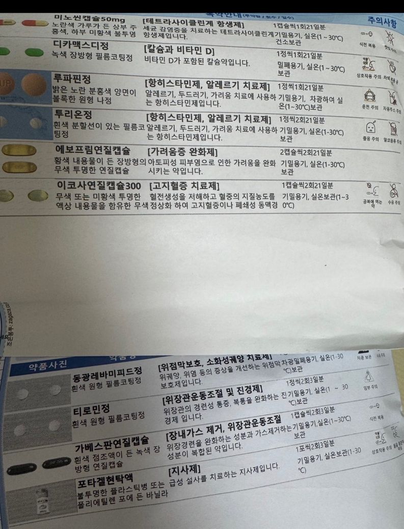 아래 같이 처방 받아 먹고 있는데(지사제는 설사 나오면 먹으라고 하셔서 현재 먹고 있지 않습니다)