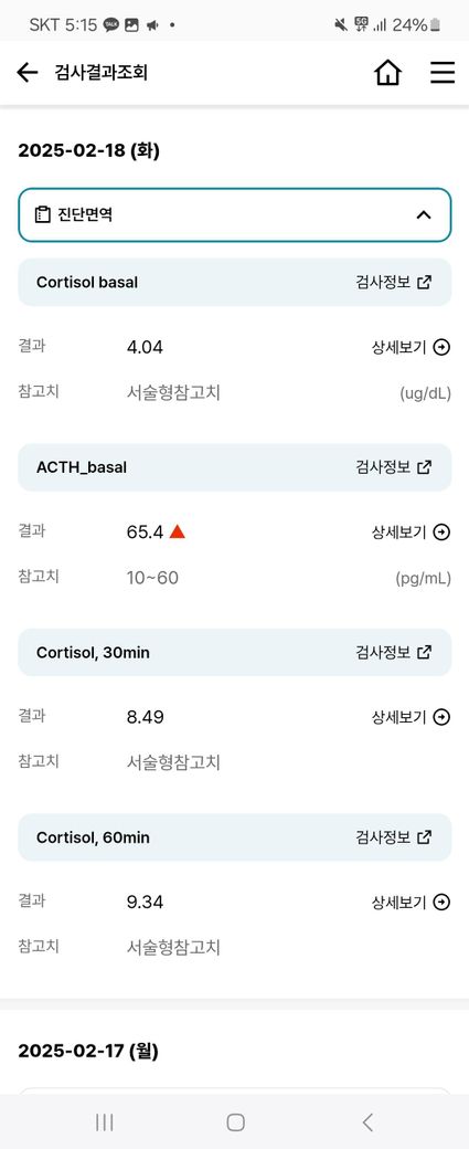코르티솔 수치 이상으로 어제 11시~1시에 걸쳐 ACTH자극검사를 했습니다(신경외과)