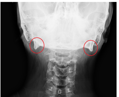occipital condyle 이 엑스레이상 으로 관찰되고 있는 것으로 사료됩니다. /