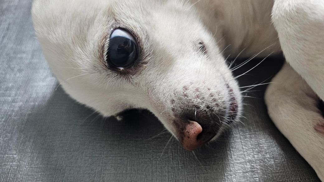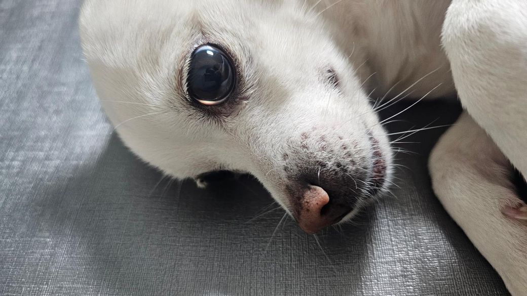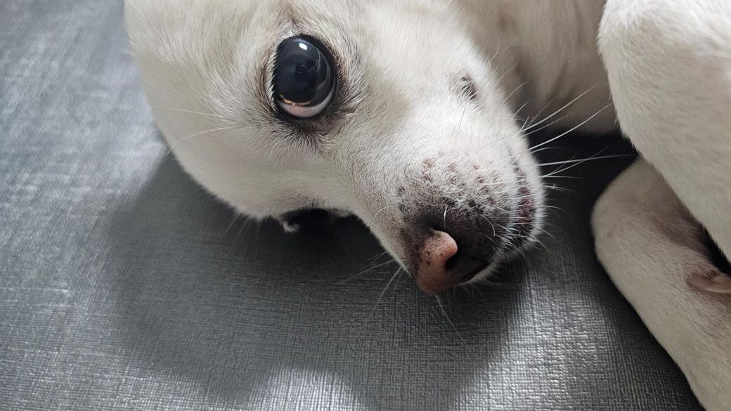 강아지는 암컷 9살이고 제가 외출직후 쓰다듬는 상황에서 보자마자 찍은 사진입니다.