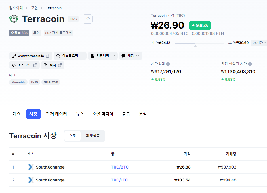 현재 상장이 되어 있는 TRC코인의 경우 아래와 같습니다.