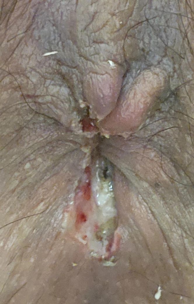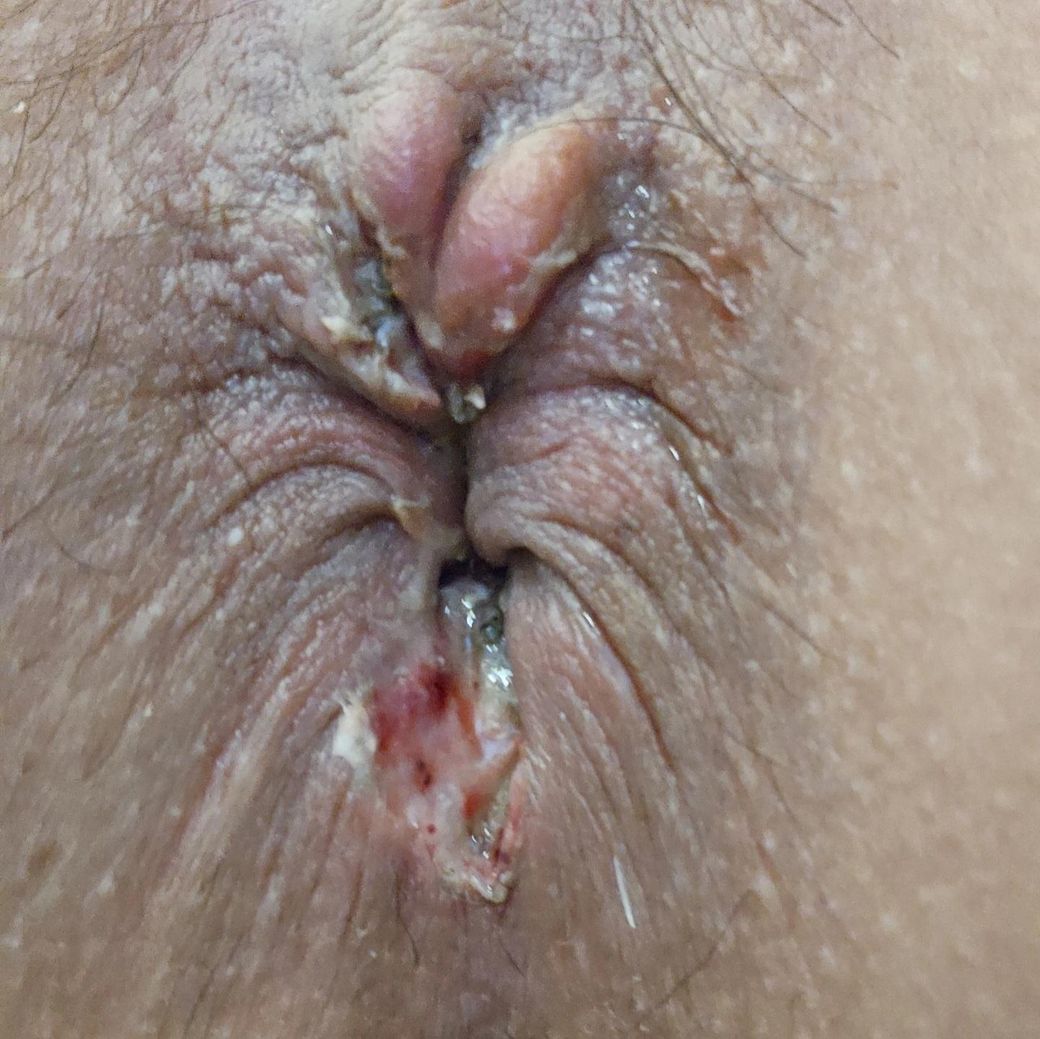 내치핵3기, 치열로 인한 치루가 생겨 절재술로 수술 후 부위를 꼬매지않고 열어뒀다고 했는데 열어 놓은 곳이 점점 하얗게 고름인지 뭔지 생깁니다.. 재발인가요..ㅠㅠ