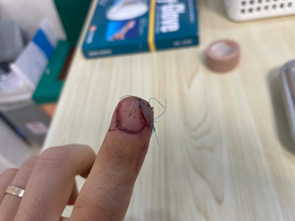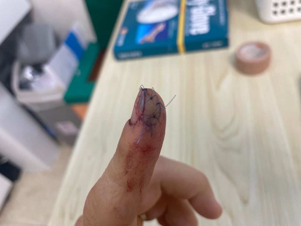 요리하다가 식칼에 검지손가락을 길이 2센티 두께 5미리 정도 절단 아닌 절단을 하게 됐습니다.
