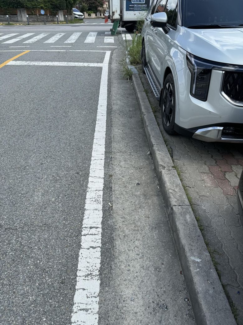 항상 인도에 차가 저렇게 주차되어있습니다. 주차된 차량들은 카센터 고객들이구요.
